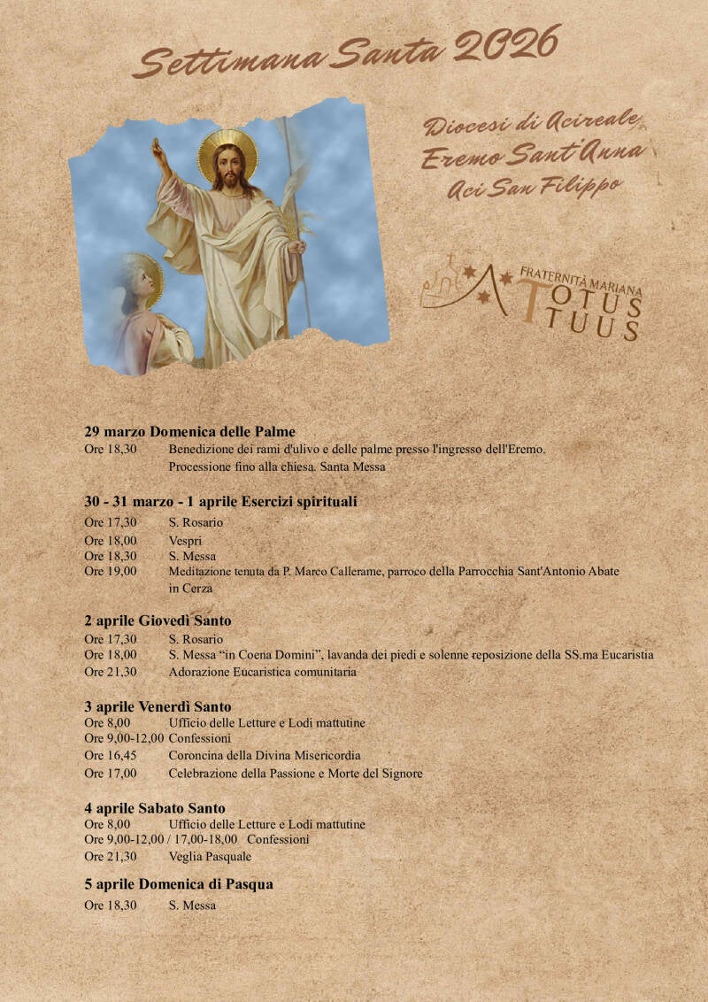 La Fraternità offre dei ritiri mensili, la terza domenica di ogni mese, per tutti coloro che desiderano approfondire e meditare la Parola di Dio, nel silenzio dell'Eremo.